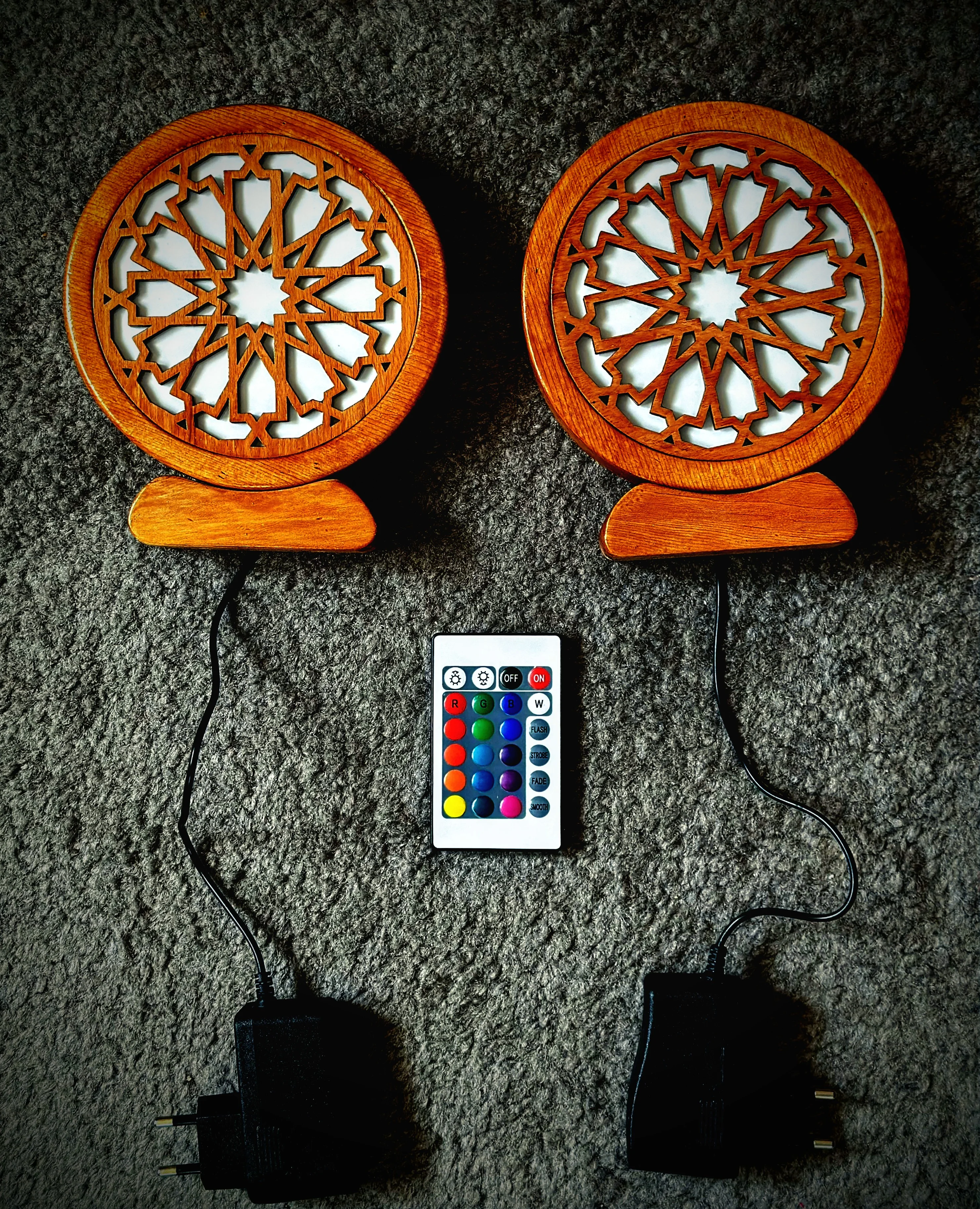 باك فيوز متغير الألوان RGB بجهاز تحكم عن بعد، عالي الجودة برونق الطراز المغربي التقليدي المعاصر، مصنوع يدويا من خشب الأرز + توصيل مجاني لحد باب البيت والدفع عند الإستلام.