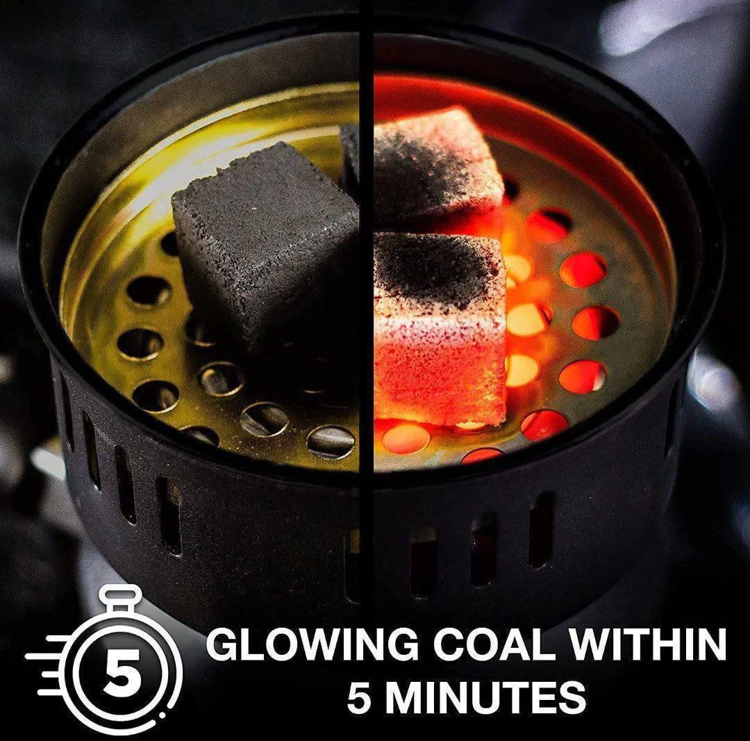 سوف يحترق الفحم خلال 3 أو5 دقائق.